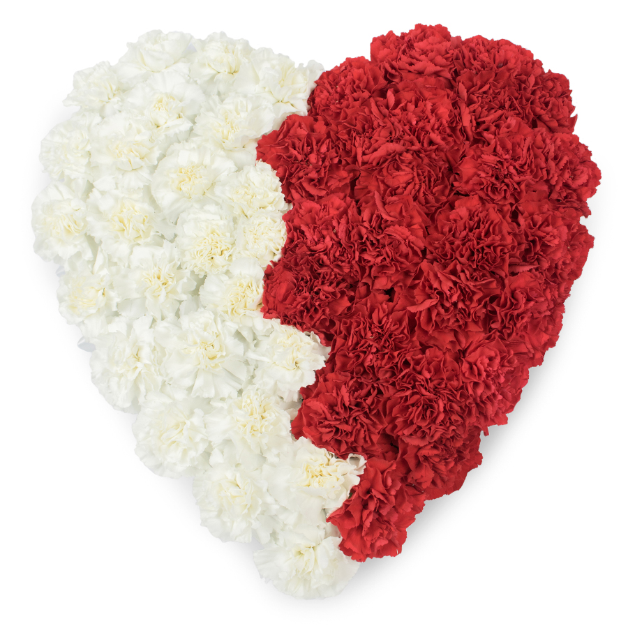 Express your deepest feelings with our heartfelt red and white carnations bouquet. This elegant arrangement features a vibrant mix of white and red carnations, each flower selected for its freshness and exceptional quality. The heart-shaped design symbolizes love and affection, making it an ideal gift for any special occasion.